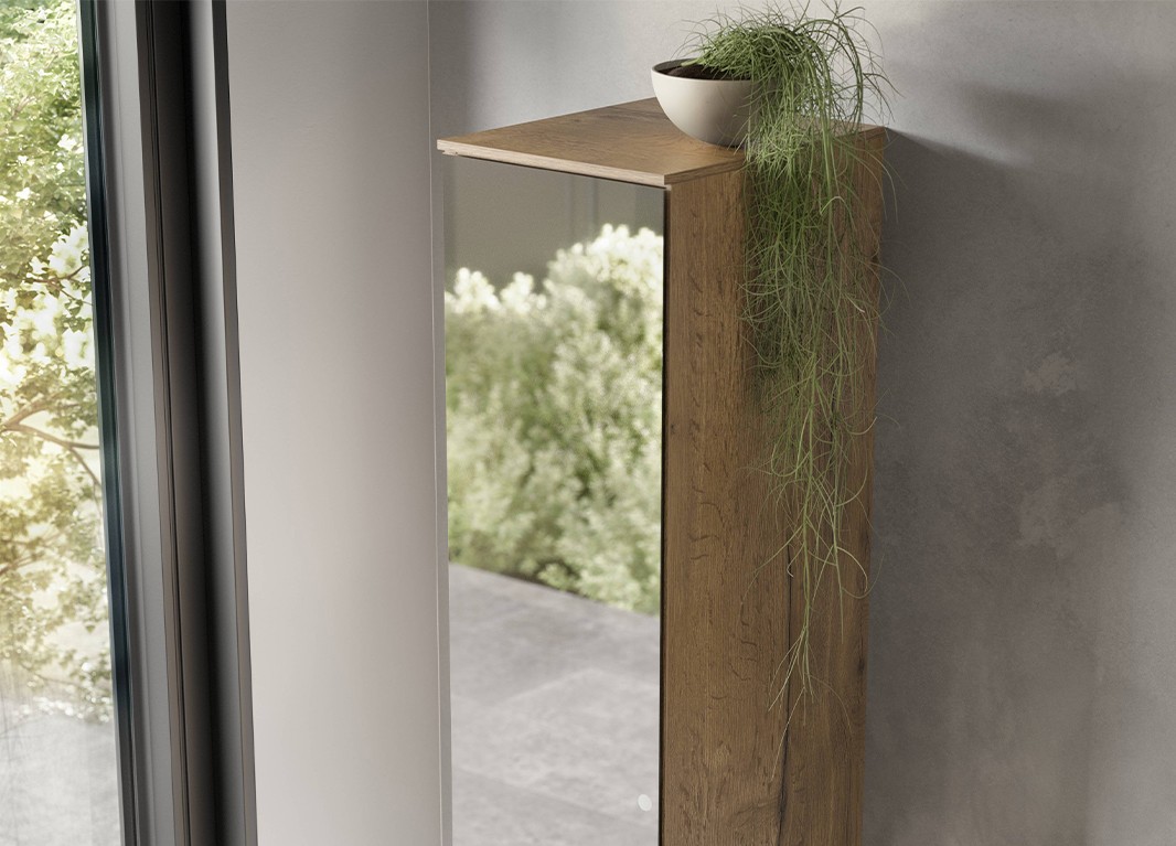 Créez une impression d’espace grâce aux façade de grandes dimensions dans un coloris unique, par example un gris taupe doux. Les éléments en verre intégrés et l’élément bas mural suspendu agrandissent l’espace et aèrent l’atmosphère.